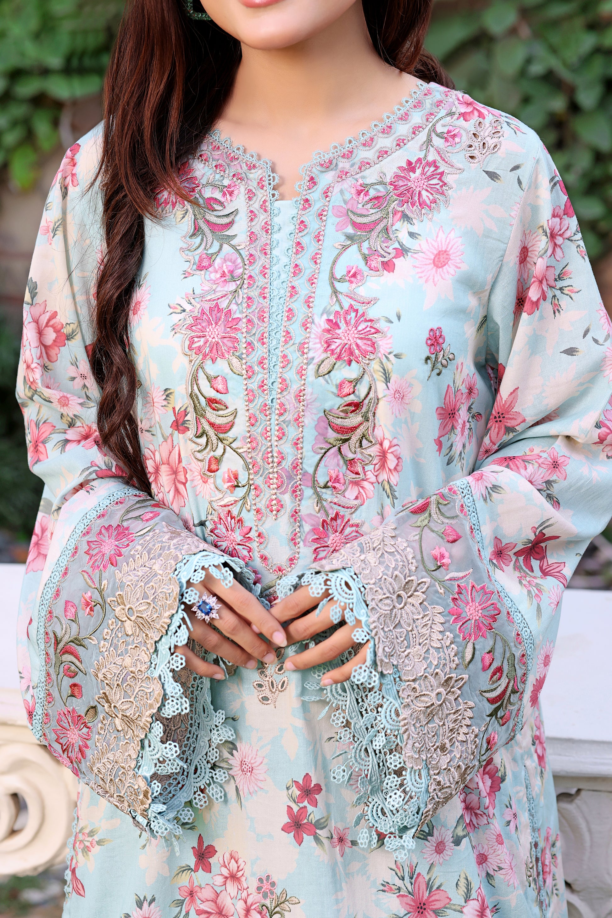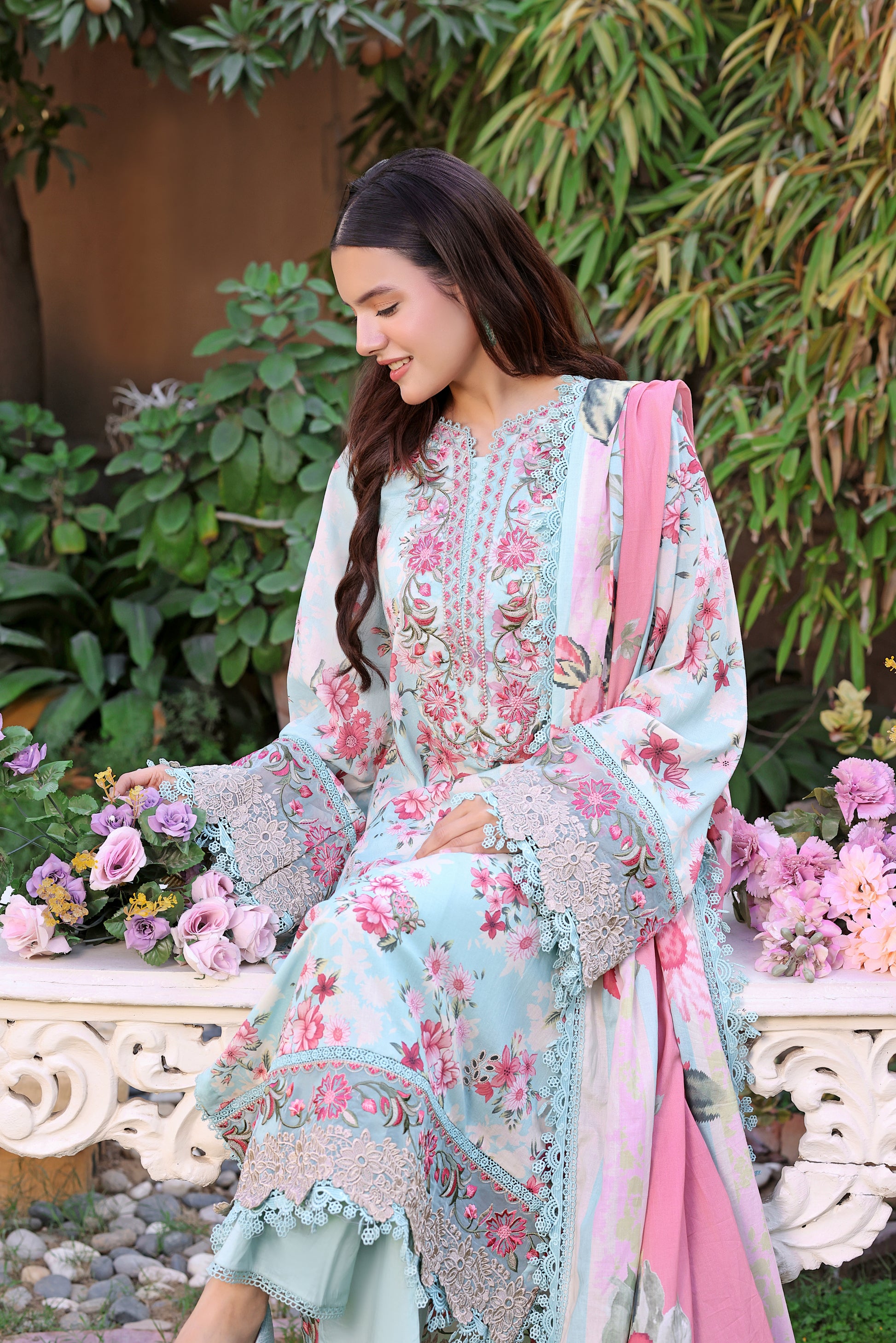 Rs 12500 Aneelas Stitched Print Emb Lawn Printed Lawn Duppata 3pc [SPR-26-02] [Dispatch Time 2 Month] with 10 sizes.