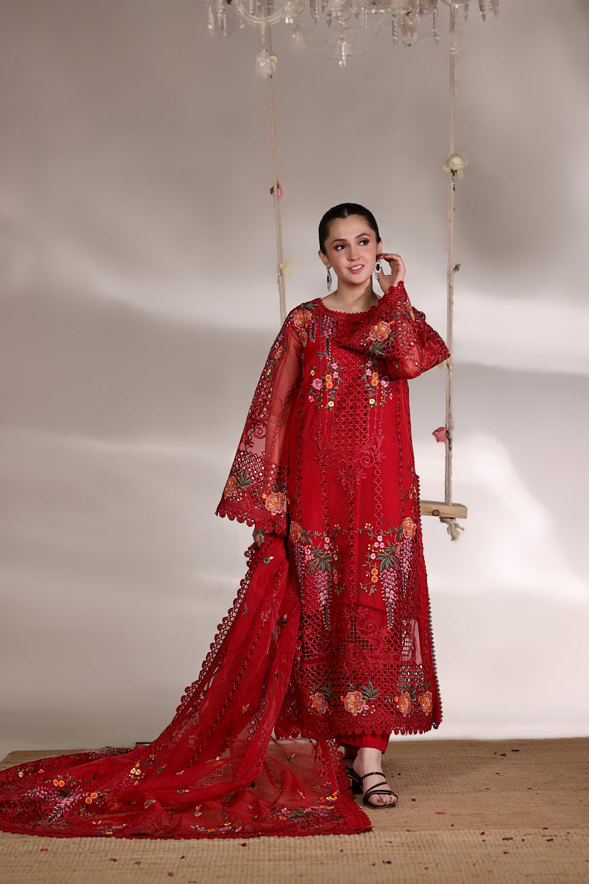 Rs 19000 Aneelas Stitched Party Wear Organza Emb 4pc [OR-05] [Dispatch Time 2 Month] with 10 sizes.